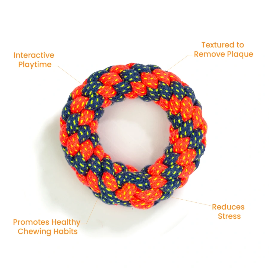 Gum Health: The rope texture acts as a natural dental floss, helping to clean the teeth and massage the gums with every chew which promotes oral hygiene and reduces the dental issues like plaque & tartar build up